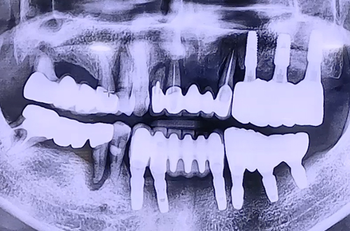 환자분은 이전 왼쪽에 임플란트를 진행하셨었고, 임플란트가 되지 않은 오른쪽 위아래 어금니와 위 앞니가 심하게 흔들거려서 거의 왼쪽으로만 식사를 하고 계시는 상태에서 내원해 주셨습니다. 때문에 오른쪽 위아래 어금니와 윗니 앞니를 임플란트를 통해서 단단히 하고 치아의 기능을 회복시켜드리는 방향으로 치료 계획을 세웠는데요. 불편한 치아들을 발치하고 임플란트를 단단히 심어드렸고, 임플란트는 굉장히 단단하게 잇몸뼈와 잘 결합되고 주변 뼈이식까지 잘 진행되었어요. 만약 심으려는 임플란트가 단단할 경우 당일에 바로 임시치아를 체결해 드리는데 환자분게서는 위 앞니 주변 잇몸뼈들이 약해서 즉시 임시치아 체결은 불가능했습니다. 따라서 위 앞니 임플란트를 잇몸 속으로 완전히 묻어두고 시간이 지나 스스로 굳게 하기로 하고 임시치아는 끼우고 빼는 타입으로 제작하여 드렸던 케이스입니다. |