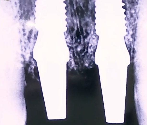 넘어져서 앞니가 손상된 상태로 내원해 주신 환자분이십니다. 갑자기 넘어지며 부딪쳐서 앞니에 극심한 통증을 호소하고 계셨는데요. 엑스레이 촬영을 해 보니 위 앞니 2개 치아의 잇몸 안쪽 뿌리 부분이 완전히 깨져 있었습니다. 만약 바깥쪽 치아 머리가 손상되었다면 보철치료로 복원해 드릴 수 있었을텐데 치아 뿌리가 부러졌기 때문에 자연 치아를 살리는 것이 불가능해 임플란트를 진행하였습니다. 부러진 앞니 2개를 발치한 후 당일 임플란트 식립과 임시치아 제작까지 해 드렸습니다. 임플란트가 단단히 자리잡을 수 있도록 뼈이식과 함께 식립하였고, 4개월간 충분히 기다린 후 완성된 보철로 마무리해 드렸습니다. 앞으로 문제가 생기지 않는지 지속적으로 검진하며 관리해 드릴 예정입니다. |