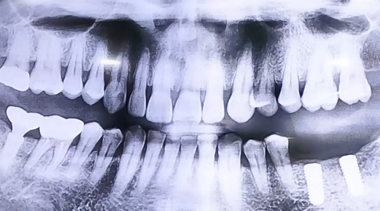 왼쪽 아래 어금니를 발치하신 후 오랫동안 그대로 둔 상태로